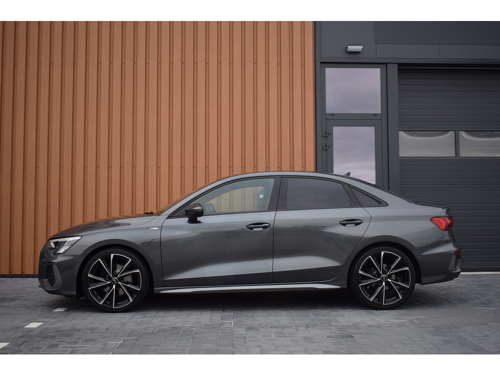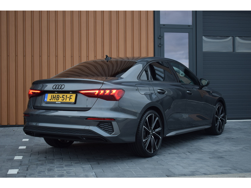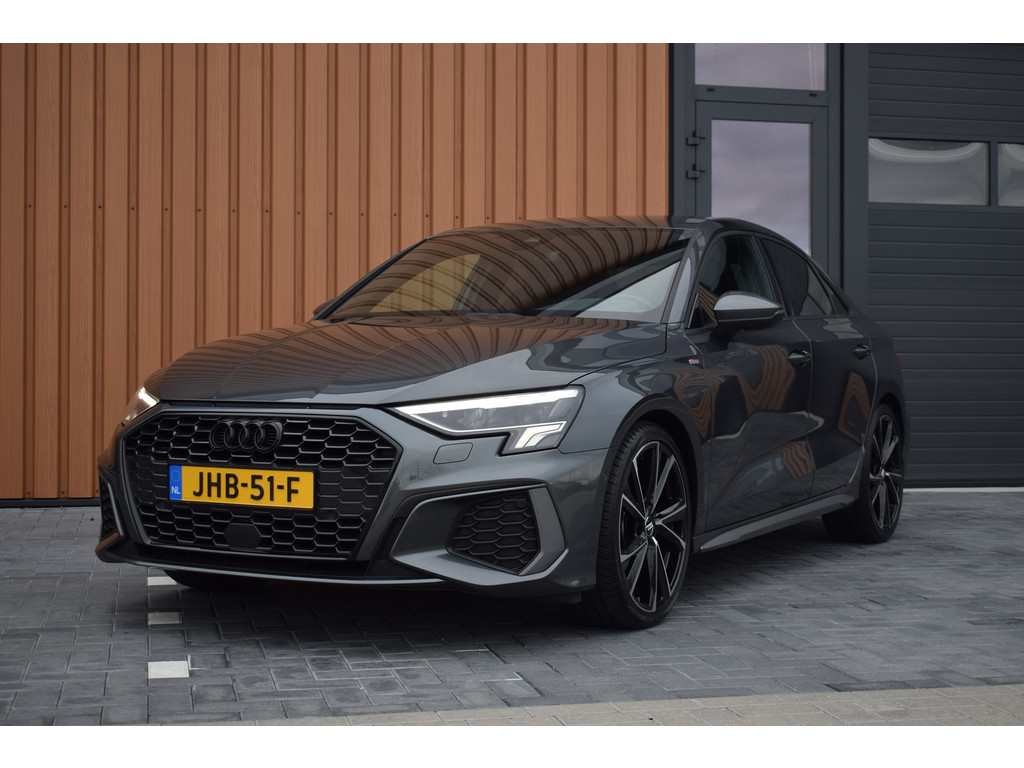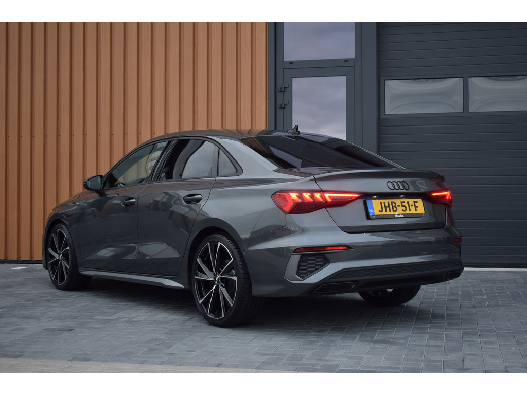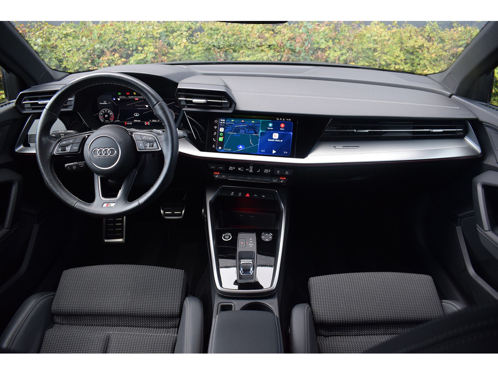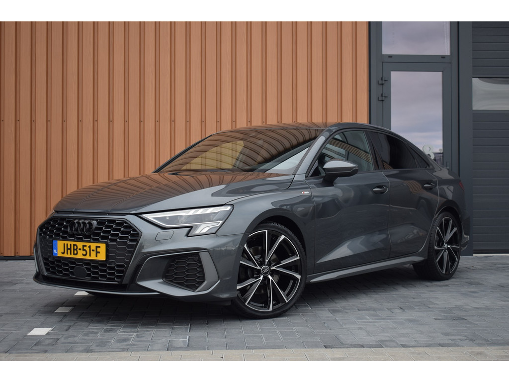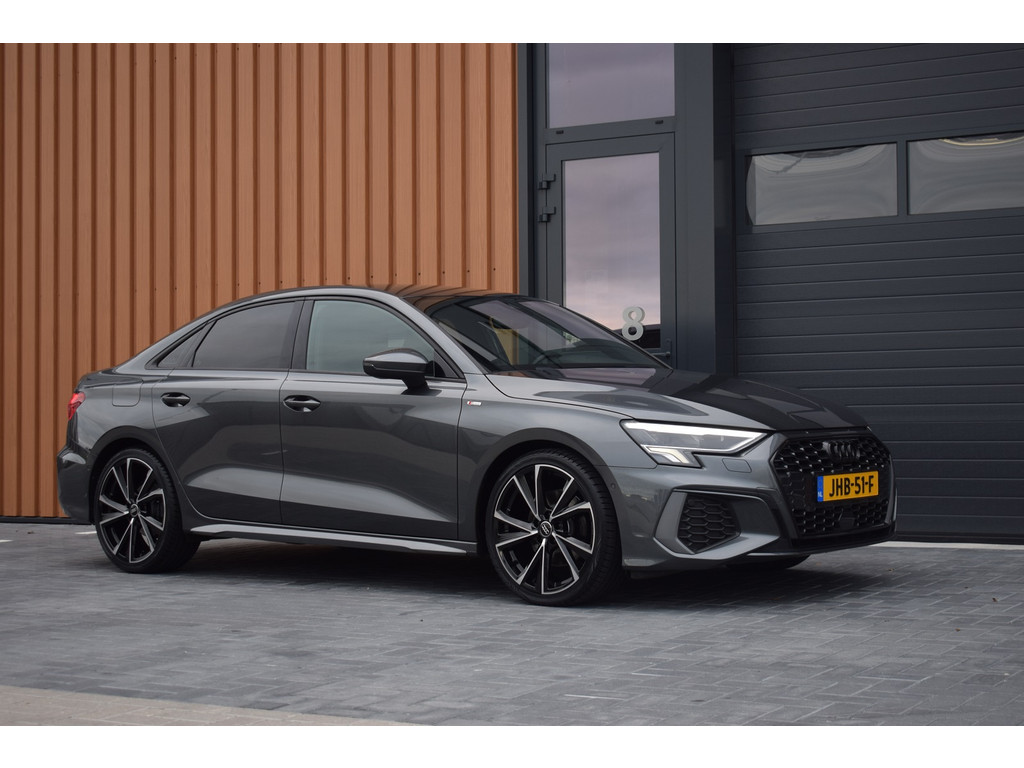 Audi A3 Limousine 35 TFSI 150pk S-tronic S-line. Uitgevoerd met o.a.: S-line in- en exterieur, Half lederen interieur met sportstoelen voor, Stoelverwarming, Adaptiev...