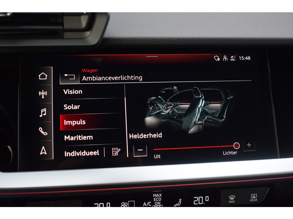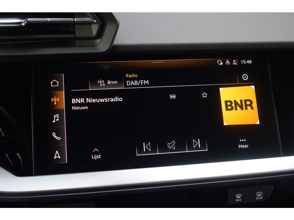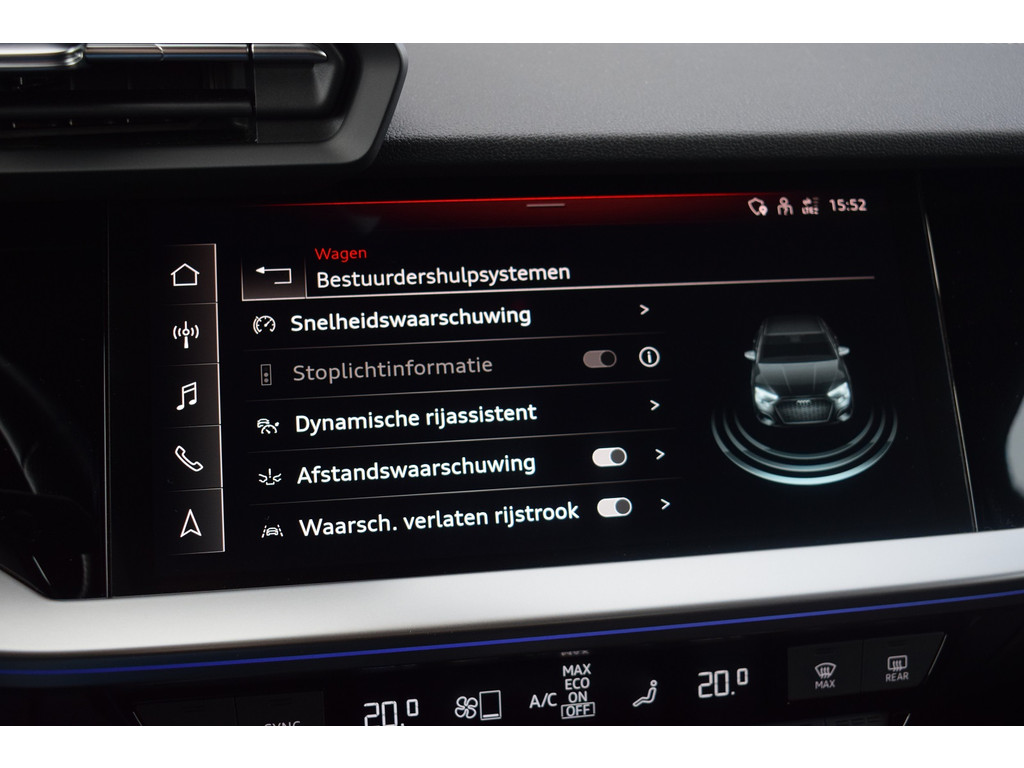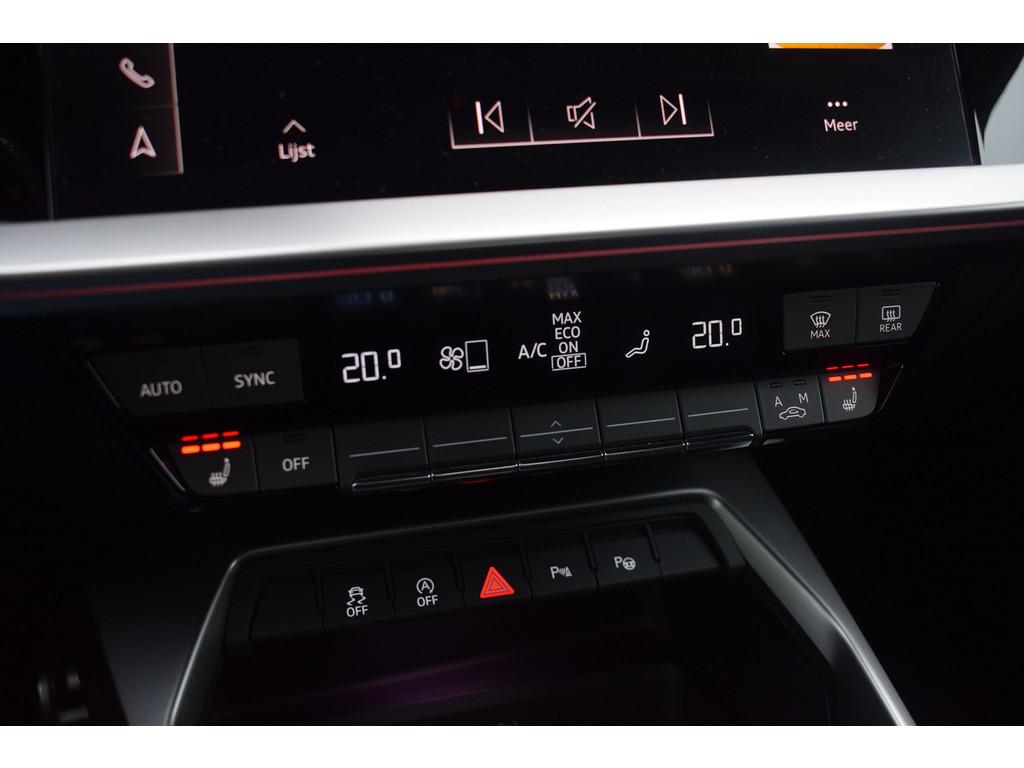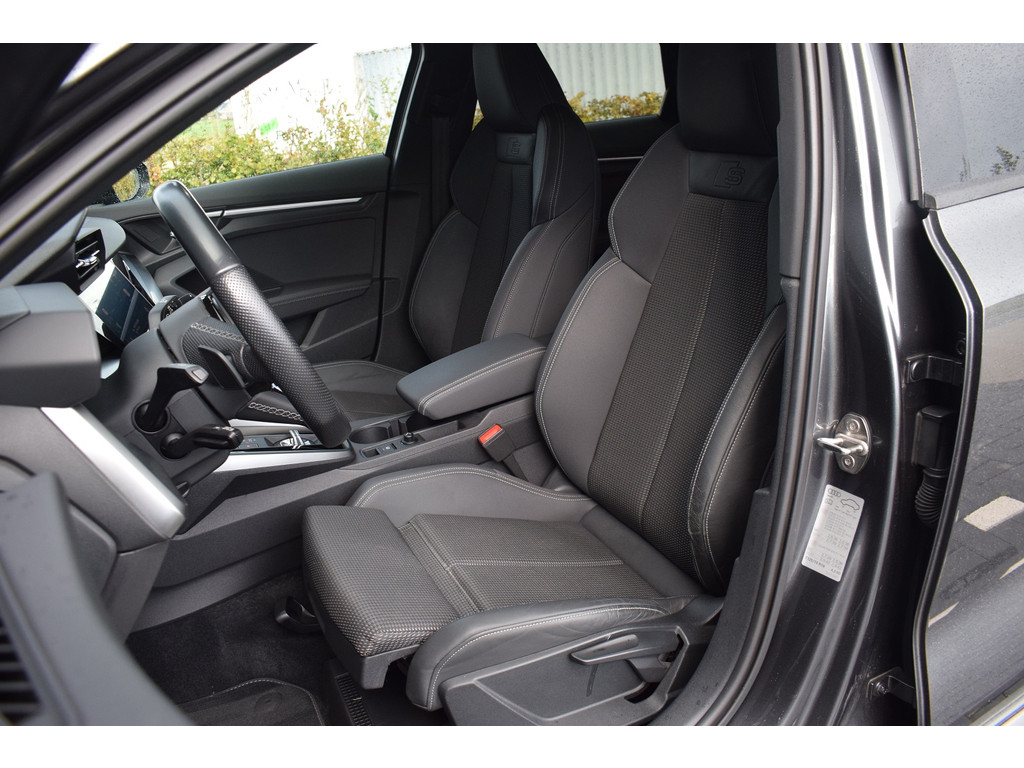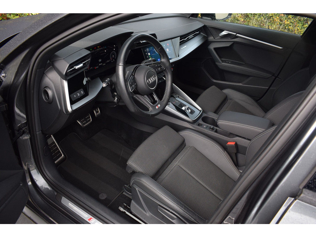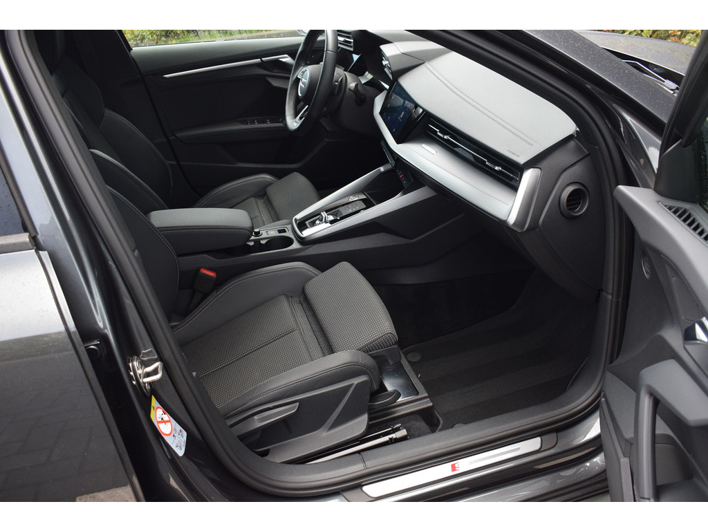 Audi A3 Limousine 35 TFSI 150pk S-tronic S-line. Uitgevoerd met o.a.: S-line in- en exterieur, Half lederen interieur met sportstoelen voor, Stoelverwarming, Adaptiev...