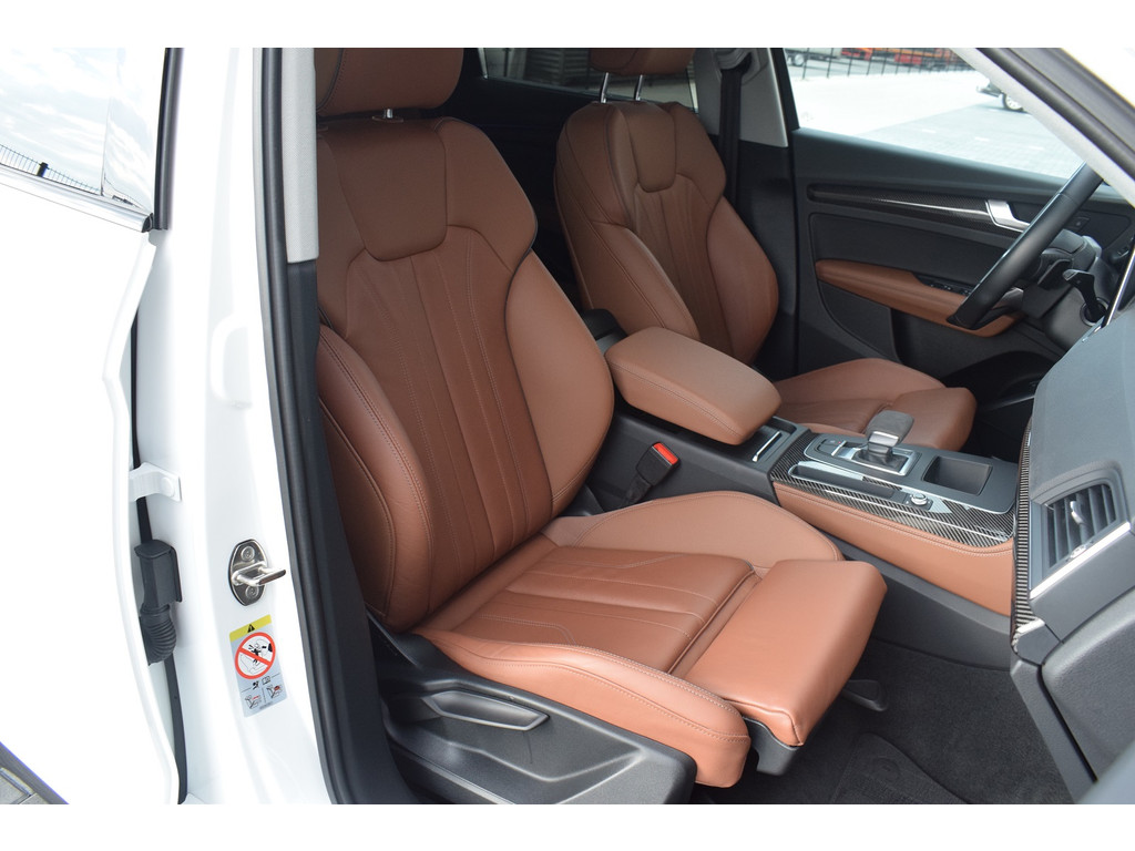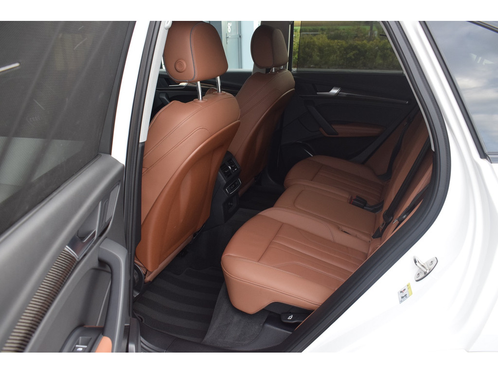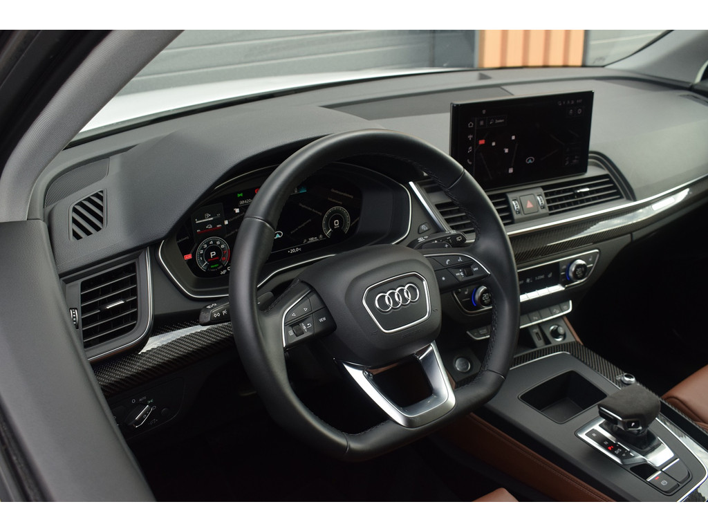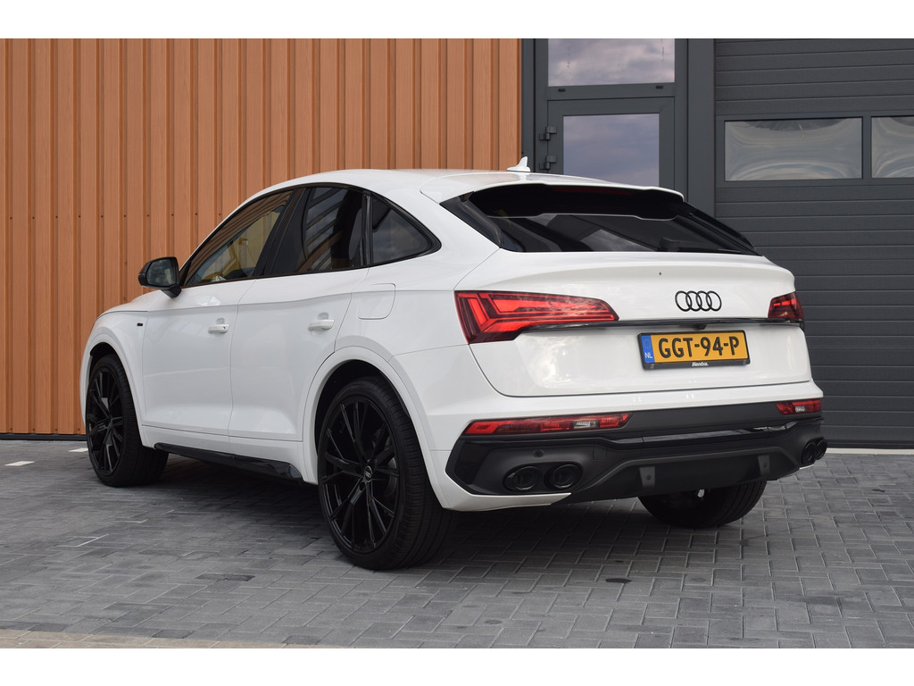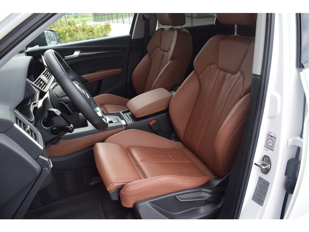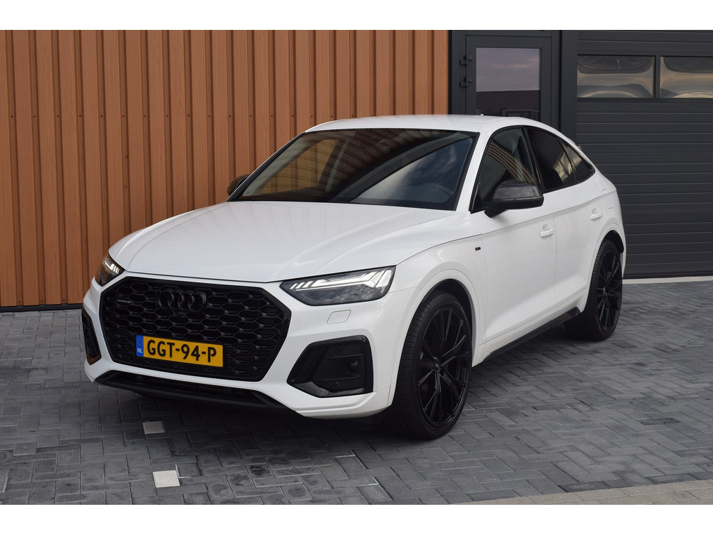 Audi Q5 Sportback 50 TFSI e 299pk S-line. Uitgevoerd in Ibis White met Cognac lederen interieur. Verder voorzien van o.a.: Luchtvering, Virutal Cockpit, MMI Navigaties...