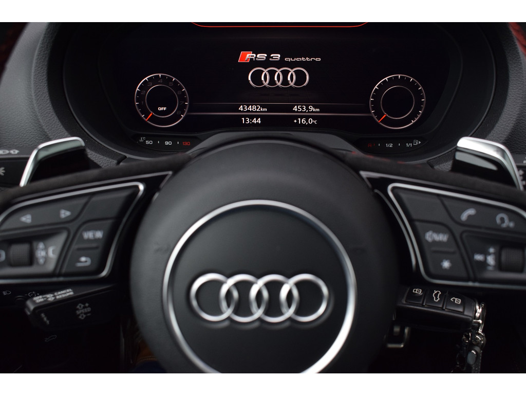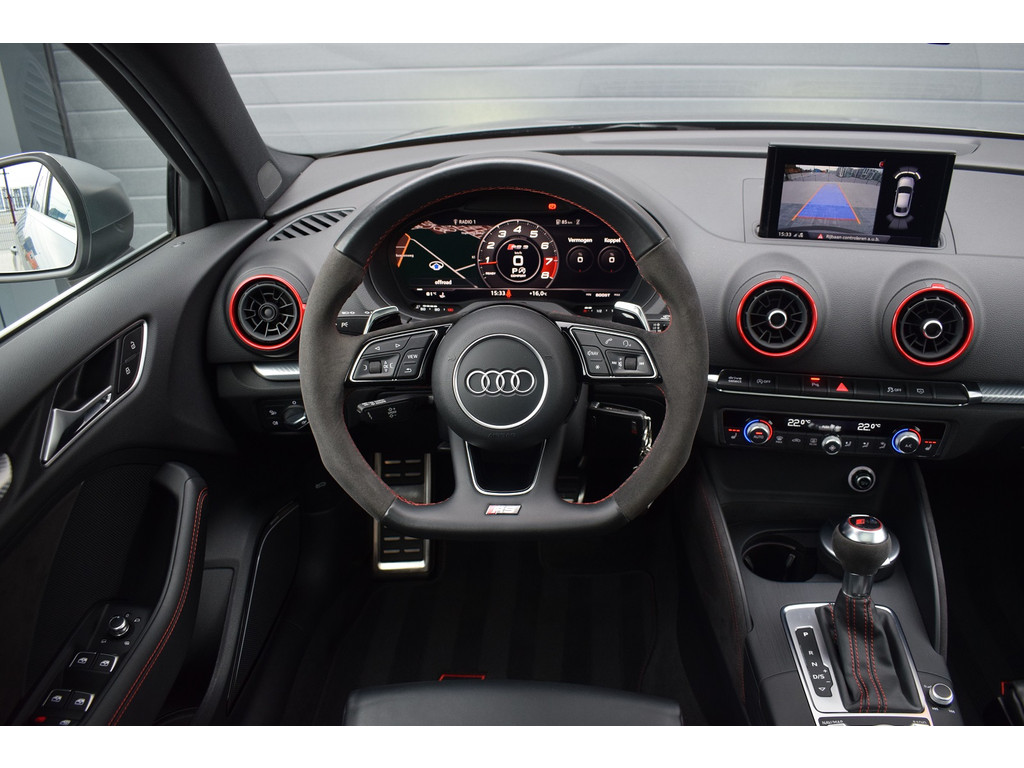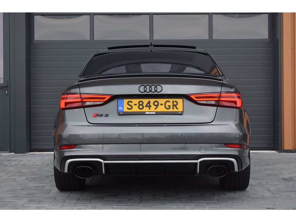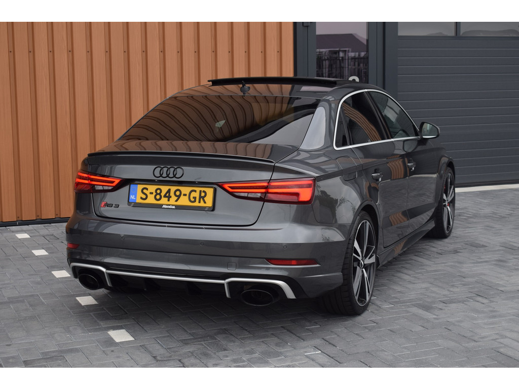 Audi RS3 Limousine 2.5 TFSI 400pk Quattro. In nieuwstaat verkerende RS3 welke in 2023 door ons is geïmporteerd, dit betreft schadevrije import zonder afwijking in het BPM bedrag. De RS3 is keurig onderhouden met volledige onderhoudshistorie aanwezig. Uitgevoerd met o.a.: RS Sportstoelen, RS designpakket rood, RS Sportuitlaat, Magnetic Ride, Panoramadak, Achteruitrijcamera, MMI Navigatiesysteem, Apple Carplay, Bang&Olufsen soundsysteem, Climate control, Cruise control, Stoelverwarming, Lederen multifunctioneel stuurwiel met schakelflippers, Lichtmetalen velgen 19″ met Michelin banden, Mat Aluminium optiekpakket, Buitenspiegels elektrisch verwarm- en inklapbaar, Alarm klasse III, LED koplampen en achterlichten, Dynamische knipperlichten achter, Licht en Regensensor, Privacy glas achter. Bedrijfsinformatie: Voor het bezichtigen van een occasion werken wij op afspraak, u kunt ons bereiken op 0522-701091, via whatsapp op 0610415909 of per mail op info@hentra.nl. Wilt u deze auto financieren? Kijk op onze website voor de mogelijkheden!