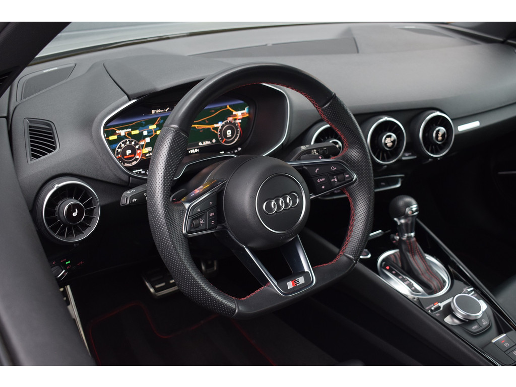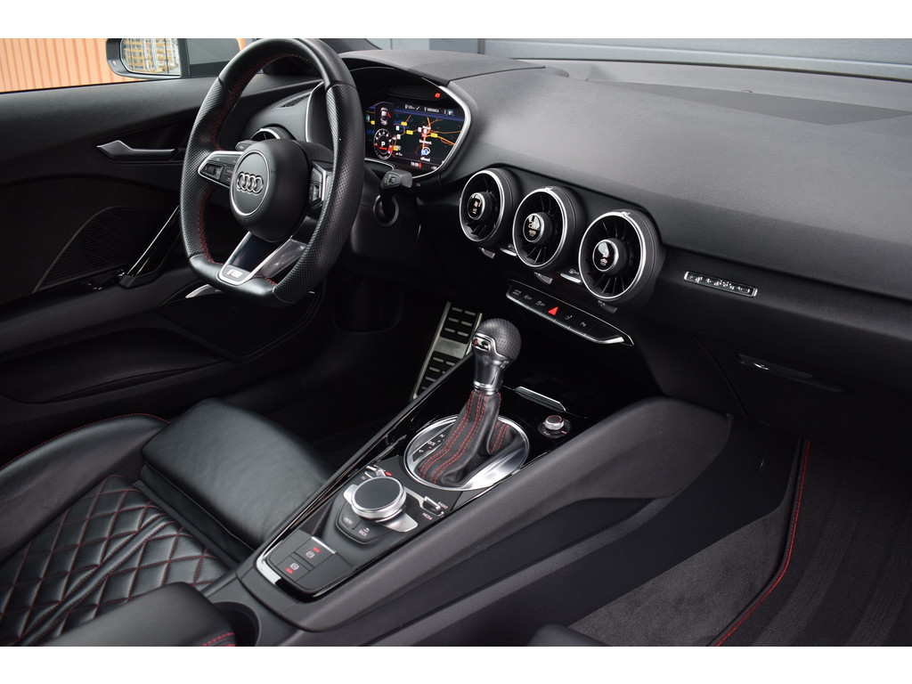 Audi TT 45 TFSI 245pk Quattro. Unieke Audi TT in de kleur Quantum Grey i.c.m. Audi Exclusive interieur. Uitgevoerd met o.a.: RS stoelen met rode stiksels, Dasboardinleg pianolakzwart, MMI Navigatie plus, Apple Carplay, Digitale radio ontvangst, Bang&Olufsen soundsysteem, Climate control, Cruise control, Lane Assist, Lederen multifunctioneel sportstuur, Voorstoelen elektrisch verstelbaar incl. lendesteunen, Stoelverwarming, Lichtmetalen velgen 20″, Sportonderstel, Keyless entry, Buitenspiegels elektrisch verwarm- en inklapbaar, Parkeersensoren voor en achter, LED koplampen en achterlichten, Dynamische knipperlichten achter, Privacy glas achter. Bedrijfsinformatie: Voor het bezichtigen van een occasion werken wij op afspraak, u kunt ons bereiken op 0522-701091, via whatsapp op 0610415909 of per mail op info@hentra.nl. Wilt u deze auto financieren? Kijk op onze website voor de mogelijkheden!