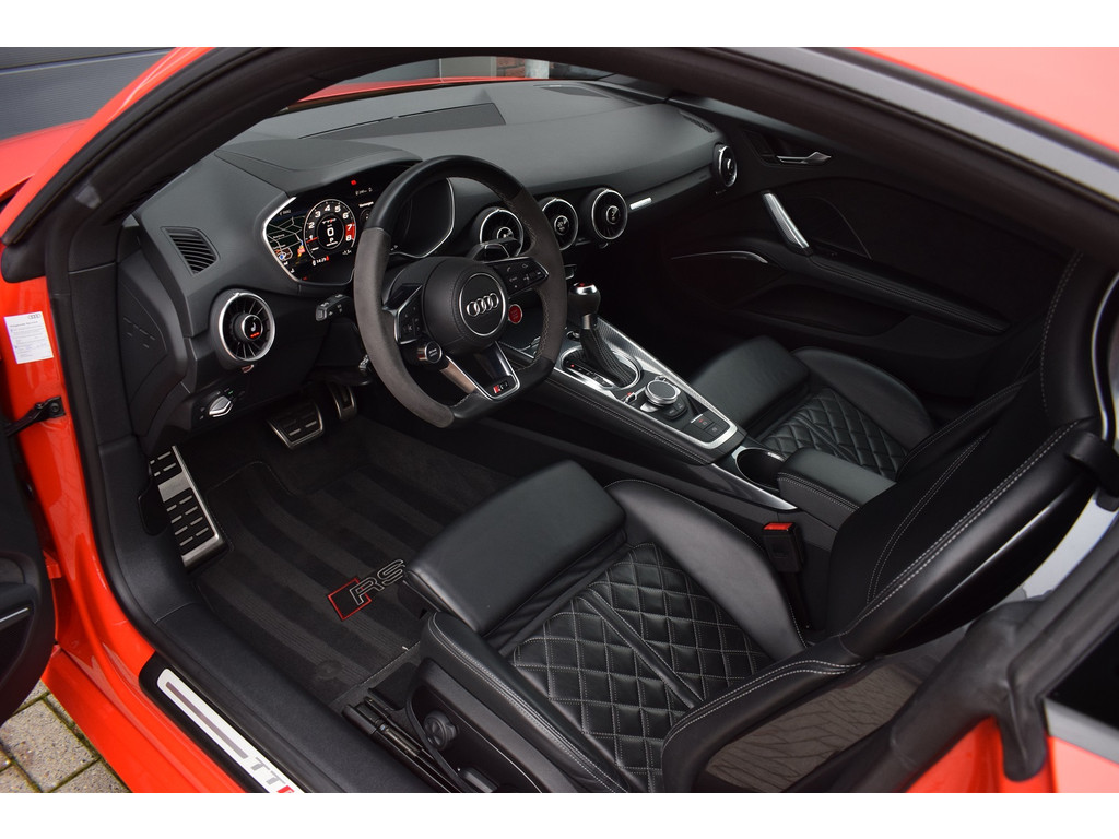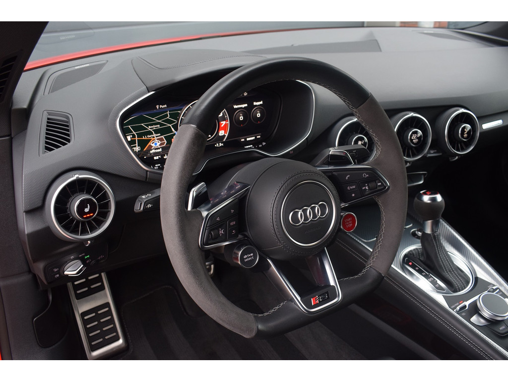 Audi TTRS 2.5 TFSI 400pk Quattro. Unieke TTRS in de kleur Catalunya Red met slechts 59.648km. Uitgevoerd met o.a.: Keramische remmen, Magnetic Ride, RS-designpakket grijs, Akrapovic sportuitlaat, MMI Navigatie plus met MMI touch, Bang&Olufsen soundsysteem, Digitale radio ontvangst DAB, Draadloze telefoonlader, Parkeersensoren voor en achter, Achteruitrijcamera, Lichtmetalen velgen 20″, Bandenspanningscontrolesysteem, Lederen interieur met elektrisch verstelbare voorstoelen, Stoelverwarming, Lederen multifunctioneel stuurwiel, Keyless entry, Climate control, Cruise control, Lane Assist, Side Assist, Matrix LED koplamepen, LED achterlichten, Automatisch dimmende binnen- en buitenspiegels, Hoogglans zwart optiekpakket. Bedrijfsinformatie: Voor het bezichtigen van een occasion werken wij op afspraak, u kunt ons bereiken op 0522-701091, via whatsapp op 0610415909 of per mail op info@hentra.nl. Wilt u deze auto financieren? Kijk op onze website voor de mogelijkheden!