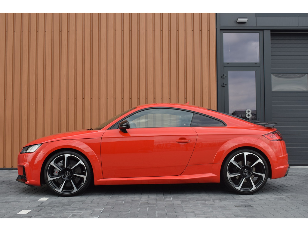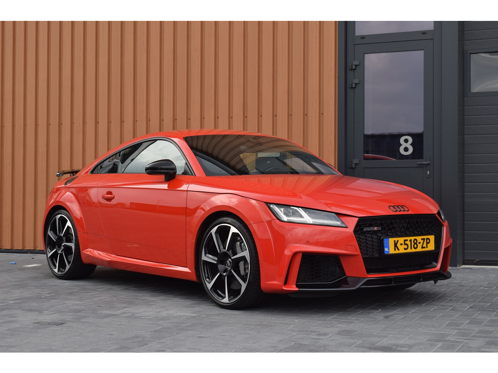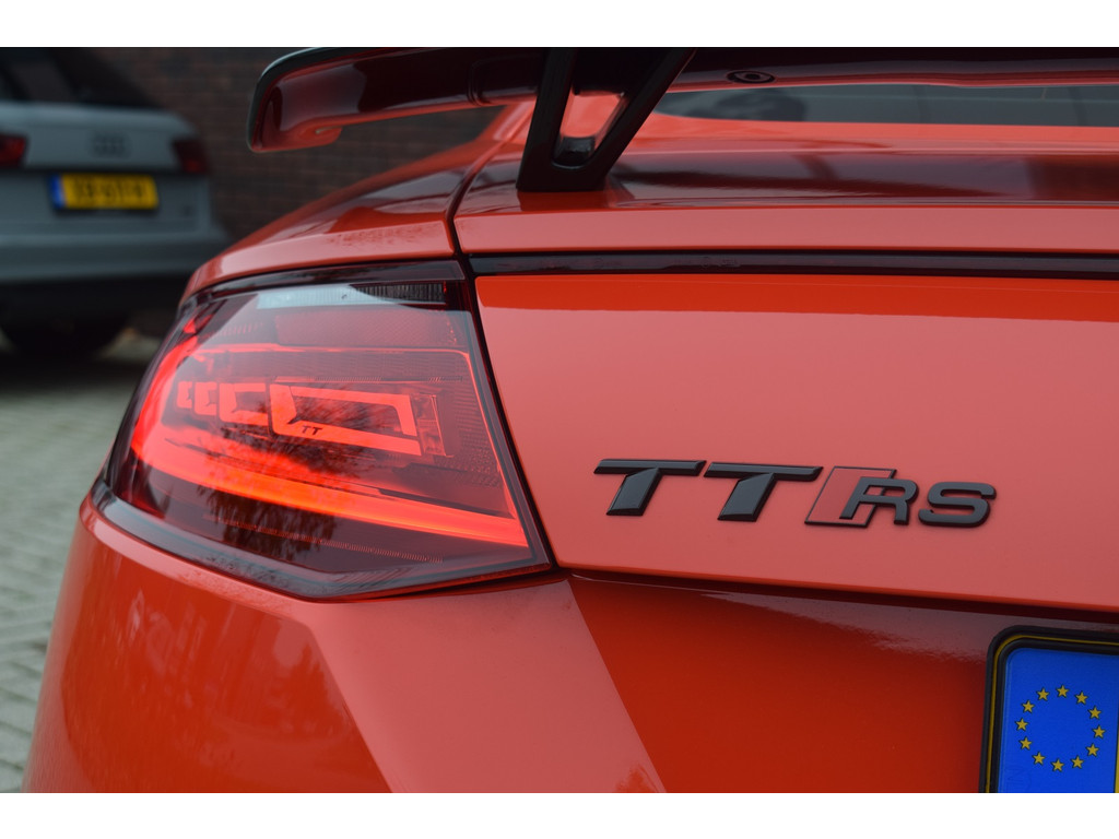 Audi TTRS 2.5 TFSI 400pk Quattro. Unieke TTRS in de kleur Catalunya Red met slechts 59.648km. Uitgevoerd met o.a.: Keramische remmen, Magnetic Ride, RS-designpakket gr...